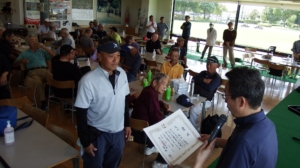 競技終了後には成績発表と表彰式が行われ、上位入賞者には記念品が贈られました。ホールインワン賞、ニアピン賞や飛び賞など、さまざまな賞が用意されており、最後まで楽しめる大会となりました。
